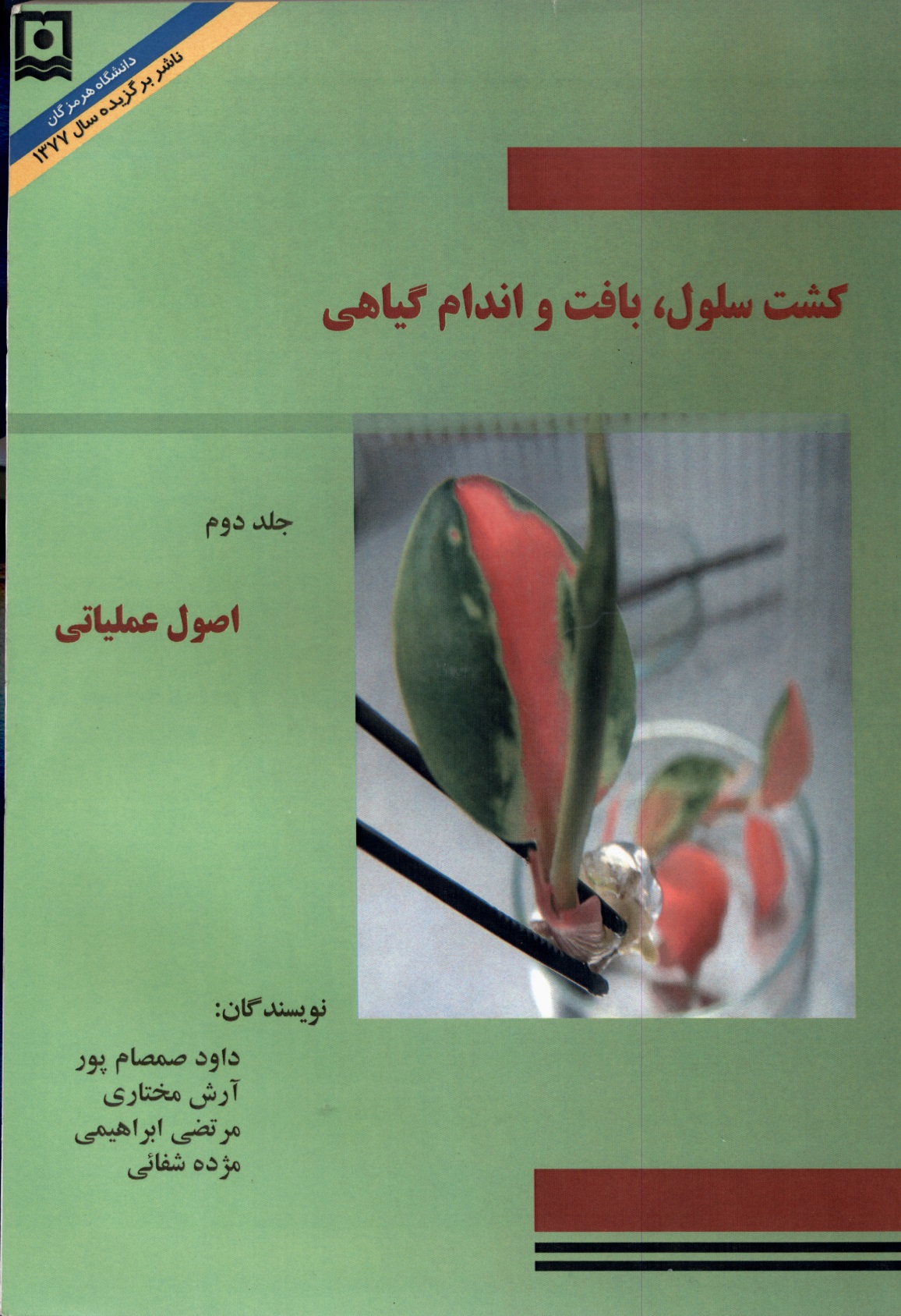 همچنین با توجه به لزوم بررسیهای بیشتر در تحقیقات مرتبط با کشت بافت گیاهی مطالبی در زمینه استفاده از فلوسیتومتری در کشت درون ،شیشه تکنیکهای بافت شناسی و نیز نحوه تهیه تصویر از کشت های درون شیشه ارائه گردیده است در انتها فصلی با عنوان مبانی تحقیق در شرایط درون شیشه گنجانده شده که با رویکرد طراحی آزمایشات مطالب مفیدی در اختیار قرار خواهد داد.تصاویر . مورد استفاده گرفته است. در طراحی جلد دوم از شرکت زیست فناوری طوبی مهرگان در اختیار نویسندگان قرار از آنجائی که هیچ اثری بدون نقص نمیباشد از همکاران و دانشجویان گرامی انتضار داریم کمـی هـا و کاستی های علمی محتوایی فنی و چاپی این مجموعه را بر ما پوشیده نگذارند تا در آینده نسبت به رفع نواقص