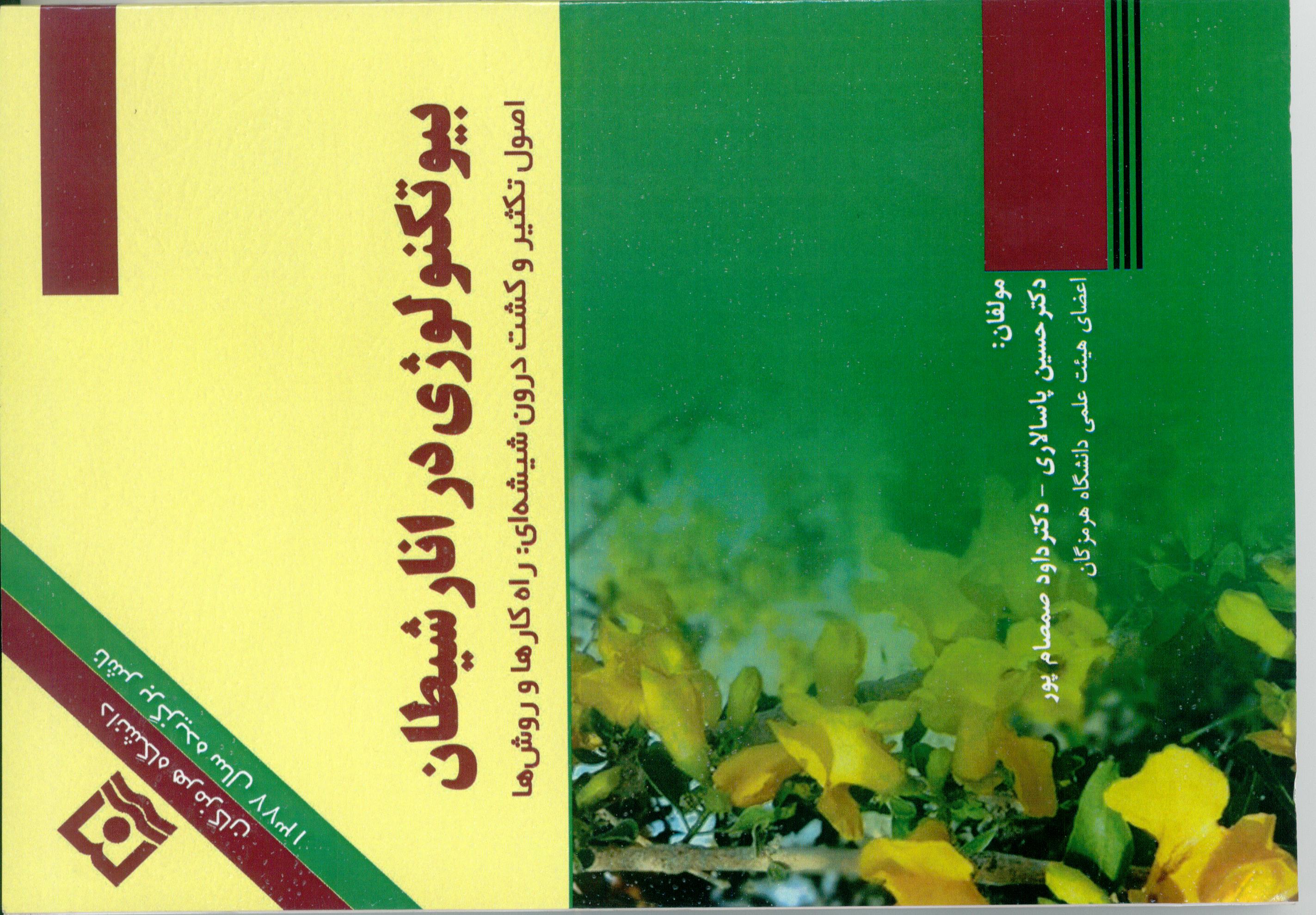 نام کتاببیوتکنولوژی در انار شیطانناشردانشگاه هرمزگانمؤلف/مولفینحسین پاسالاری، داوود صمصامپورچاپمارالنوبت چاپاول 1400شمارگان500 نسخهقیمت400,000 ریالشابک 13 رقمی978-622-7440-07-2
