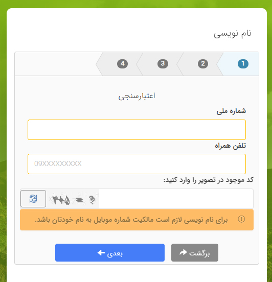 3- درج کد ملی و شماره تلفن همراه متعلق به همان کد ملی