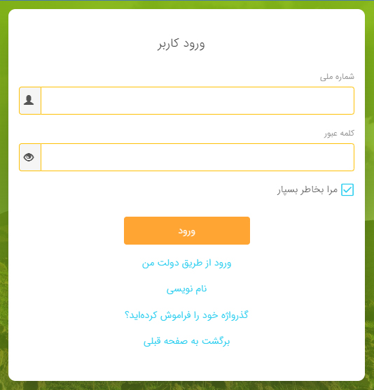 1- نام کاربری (که همان کد ملی می باشد) و کلمه عبور که در مراحل قبل تعریف نموده است