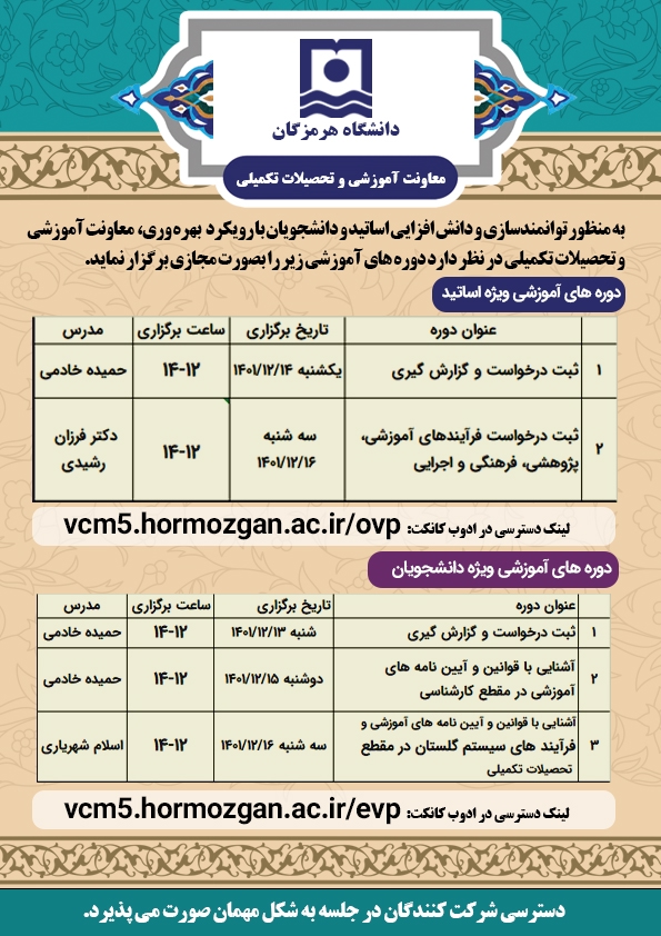 دوره های آموزشی مجازی ویژه اساتید و دانشجویان