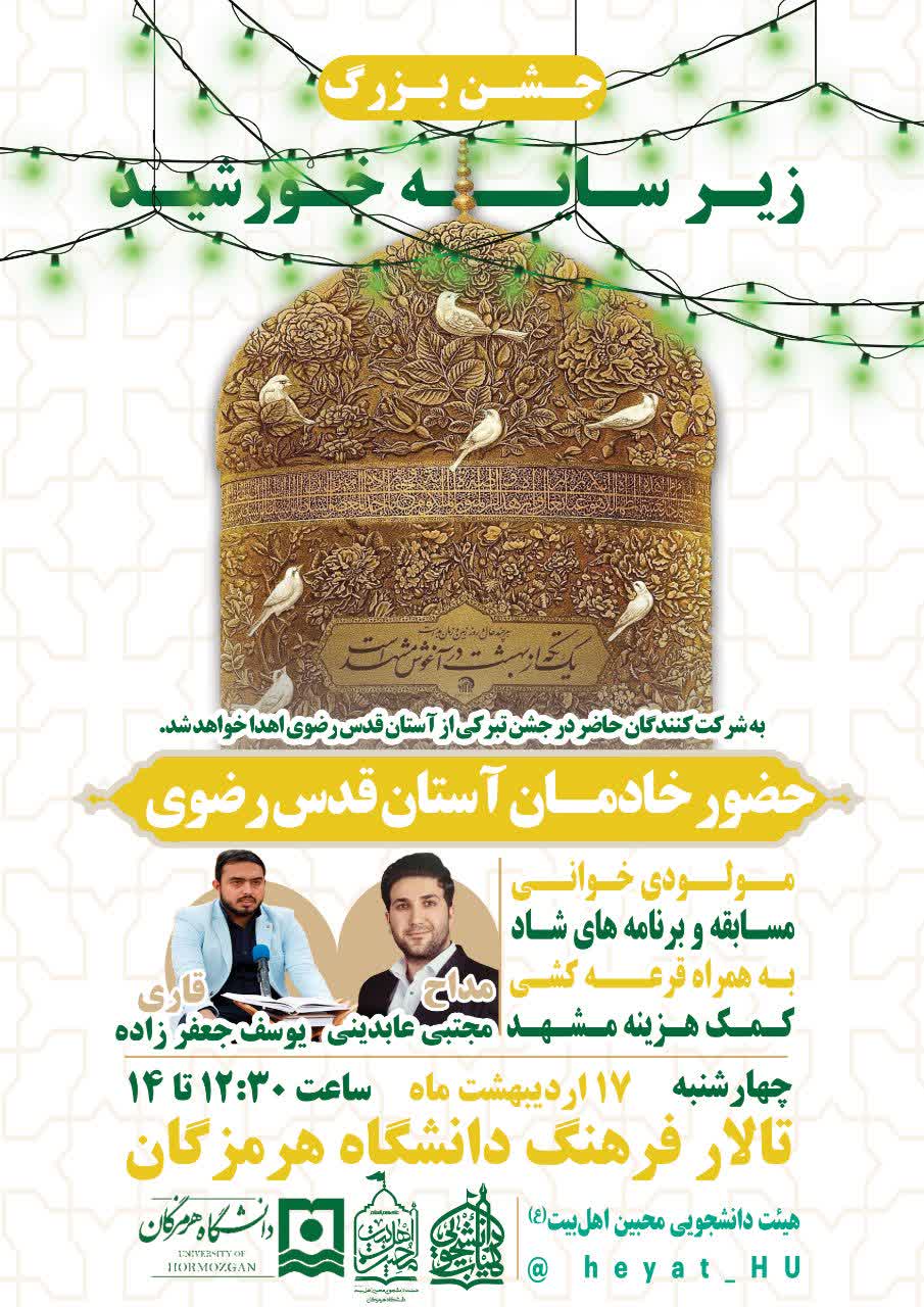 هیئت دانشجویی محبین اهل‌بیت علیهم‌السلام دانشگاه هرمزگان به‌مناسبت فرا رسیدن به مناسبت دهه کرامت برگزار می‌نماید: