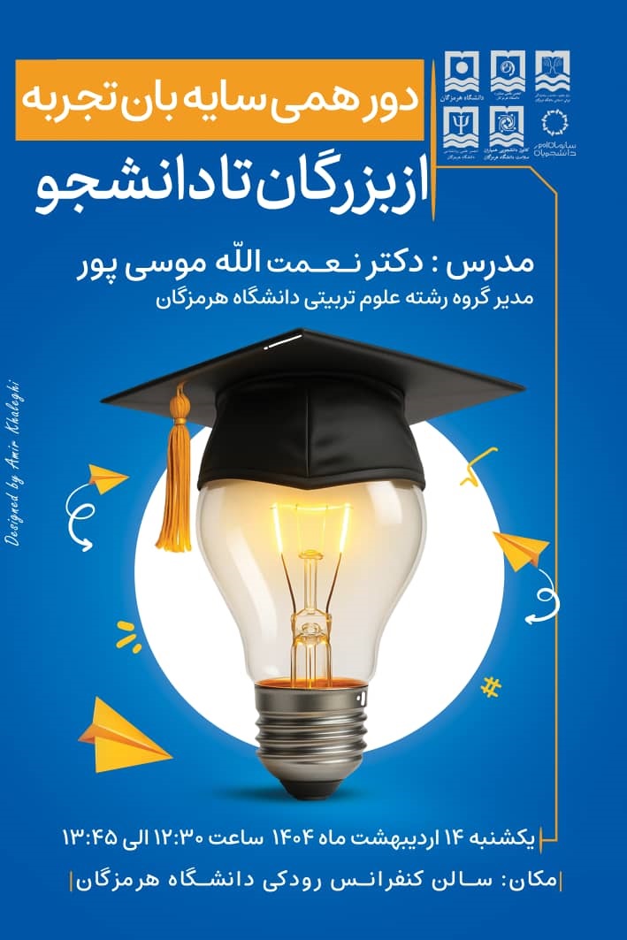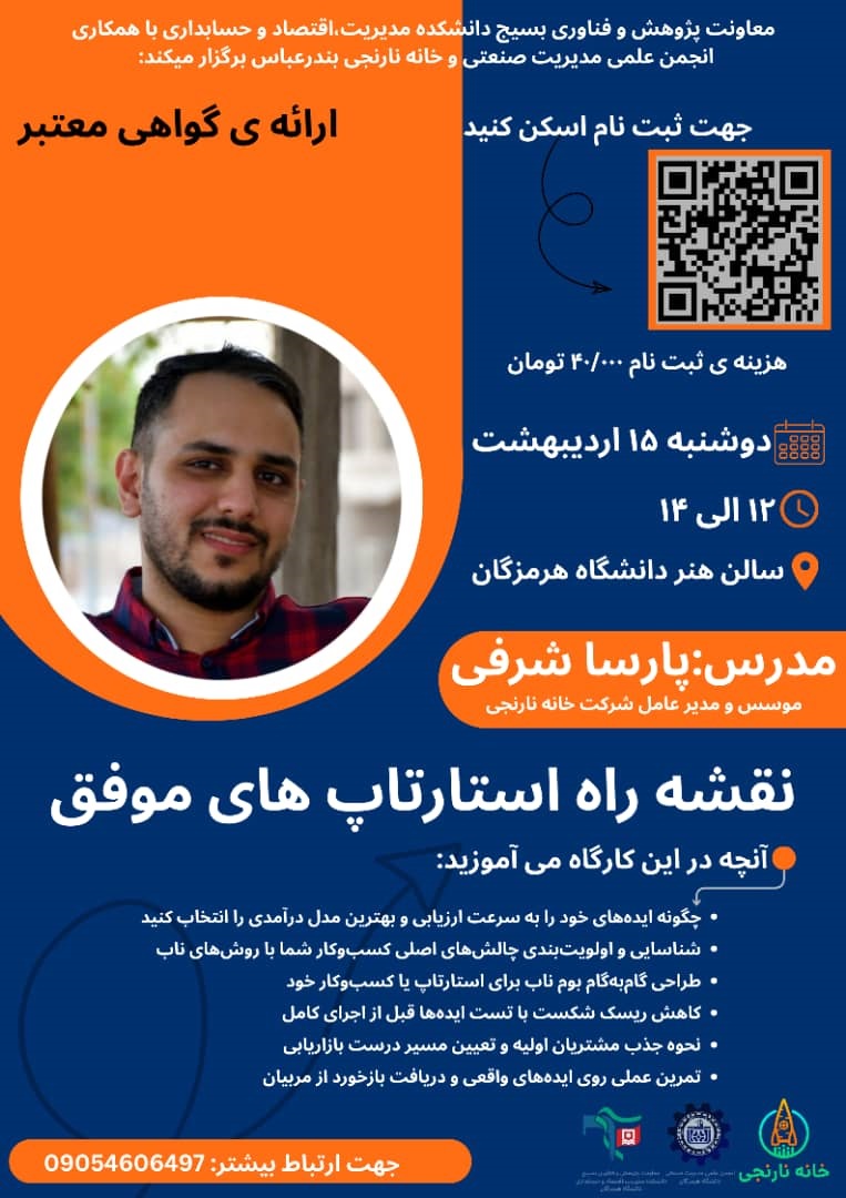 بسیج دانشجویی دانشگاه هرمزگان با همکاری انجمن علمی مدیریت صنعتی دانشگاه هرمزگان و خانه نارنجی بندرعباس برگزار می‌نماید: