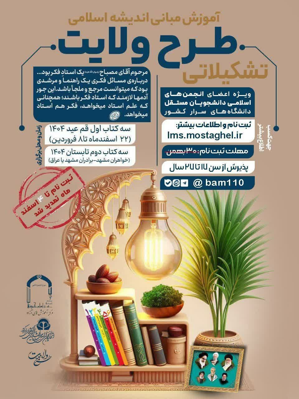 فراخوان ثبت‌نام طرح ولایت نوروز و تابستان 1404 ویژه اعضای انجمن‌های اسلامی دانشجویان مستقل