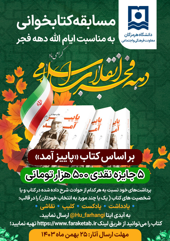معاونت فرهنگی و اجتماعی دانشگاه هرمزگان برگزار می‌نماید: