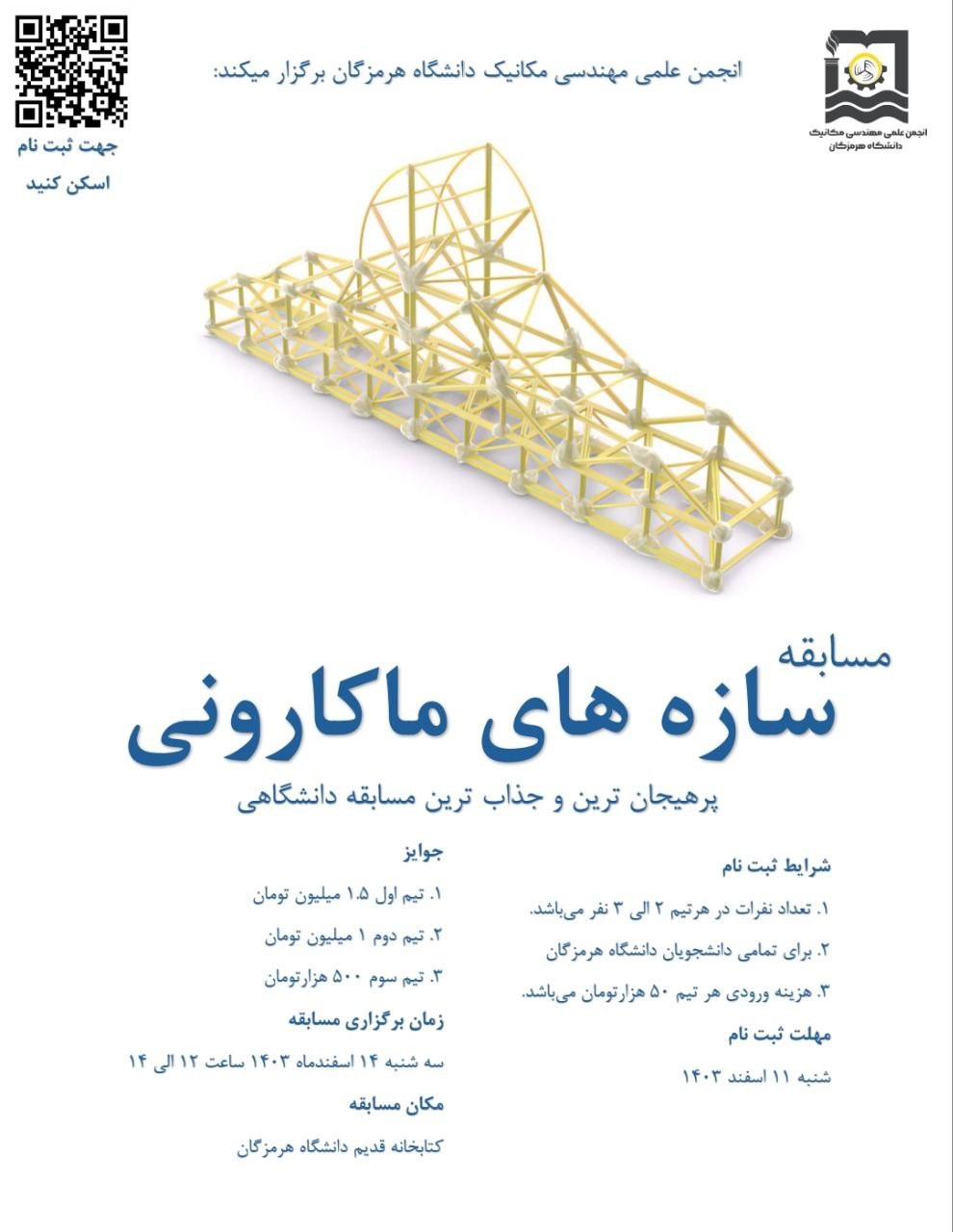 انجمن علمی مهندسی مکانیک دانشگاه هرمزگان برگزار می‌نماید: