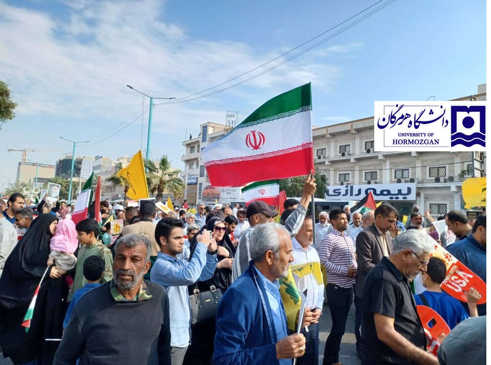 گزارش تصویری از حضور خانواده بزرگ دانشگاه هرمزگان در راهپیمایی «جمعه نصر» در بندرعباس