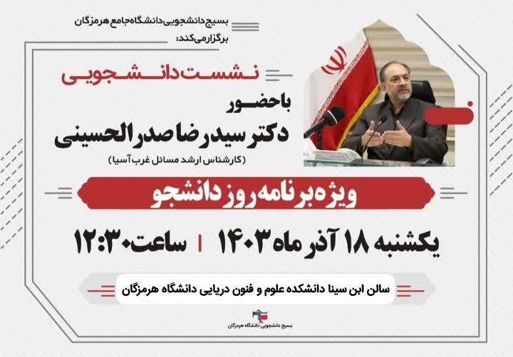 فراخوان دعوت به نشست دانشجویی با حضور دکتر سید رضا صدر الحسینی (کارشناس ارشد مسائل غرب آسیا)