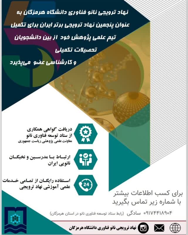 دعوت از دانشجویان علاقمند به عضویت در نهاد ترویجی نانوفناوری دانشگاه هرمزگان
