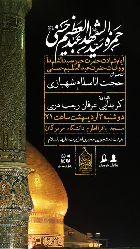 مراسم هفتگی هیئت | ایام شهادت حضرت حمزه سیدالشهدا و وفات حضرت عبدالعظیم حسنی