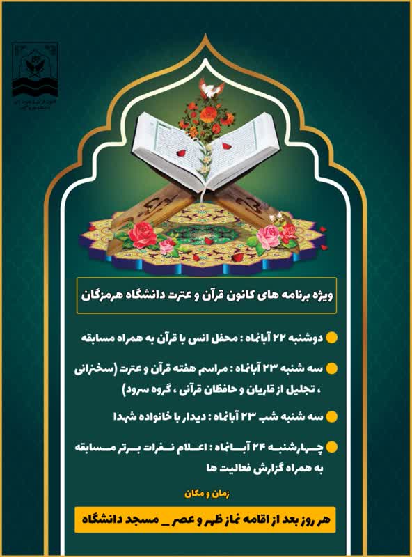 پیام معاونت فرهنگی دانشگاه هرمزگان به مناسبت هفته قرآن و عترت