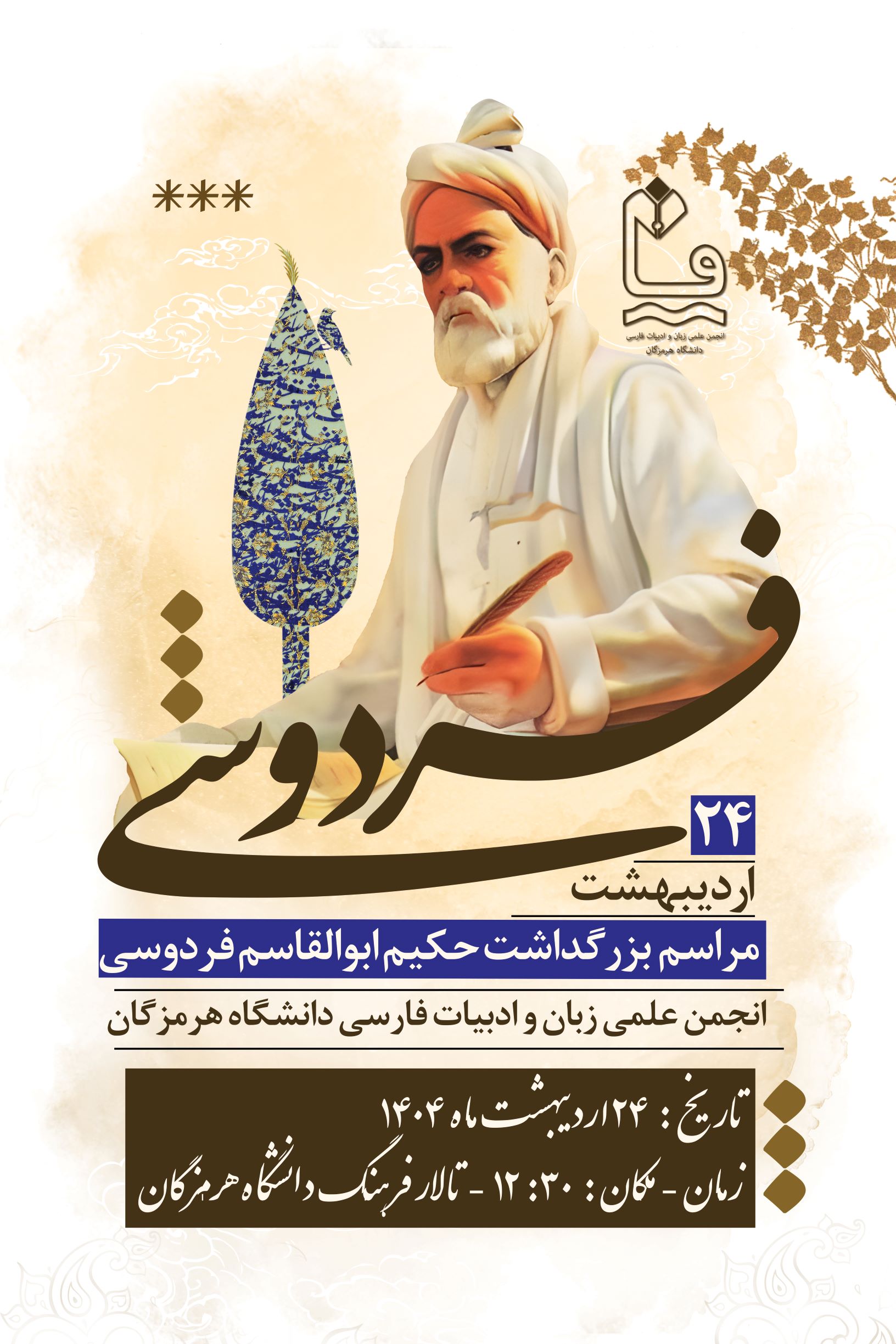 به مناسبت فرا رسیدن روز بزرگداشت فردوسی، انجمن علمی زبان و ادبیات فارسی دانشگاه هرمزگان برگزار می‌نماید: