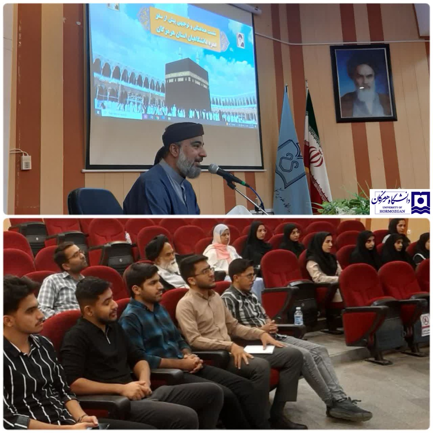 در این مراسم، حجت‌الاسلام‌والمسلمین تقوی، رئیس استانی نهاد نمایندگی مقام معظم رهبری در دانشگاه‌های هرمزگان، و جناب شیخ حسین بازماندگان، عالم برجسته اهل سنت، به همراه حجت‌الاسلام‌والمسلمین مطهری‌پور، رئیس ستاد عمره و عتبات دانشگاهیان کشور (به صورت مجازی)، به ایراد سخنرانی پرداختند. محورهای مطرح‌شده شامل آمادگی‌های معنوی، احکام و مناسک عمره، توصیه‌های فرهنگی و اجرایی، و بیان نکات مهم مرتبط با سفر بود.