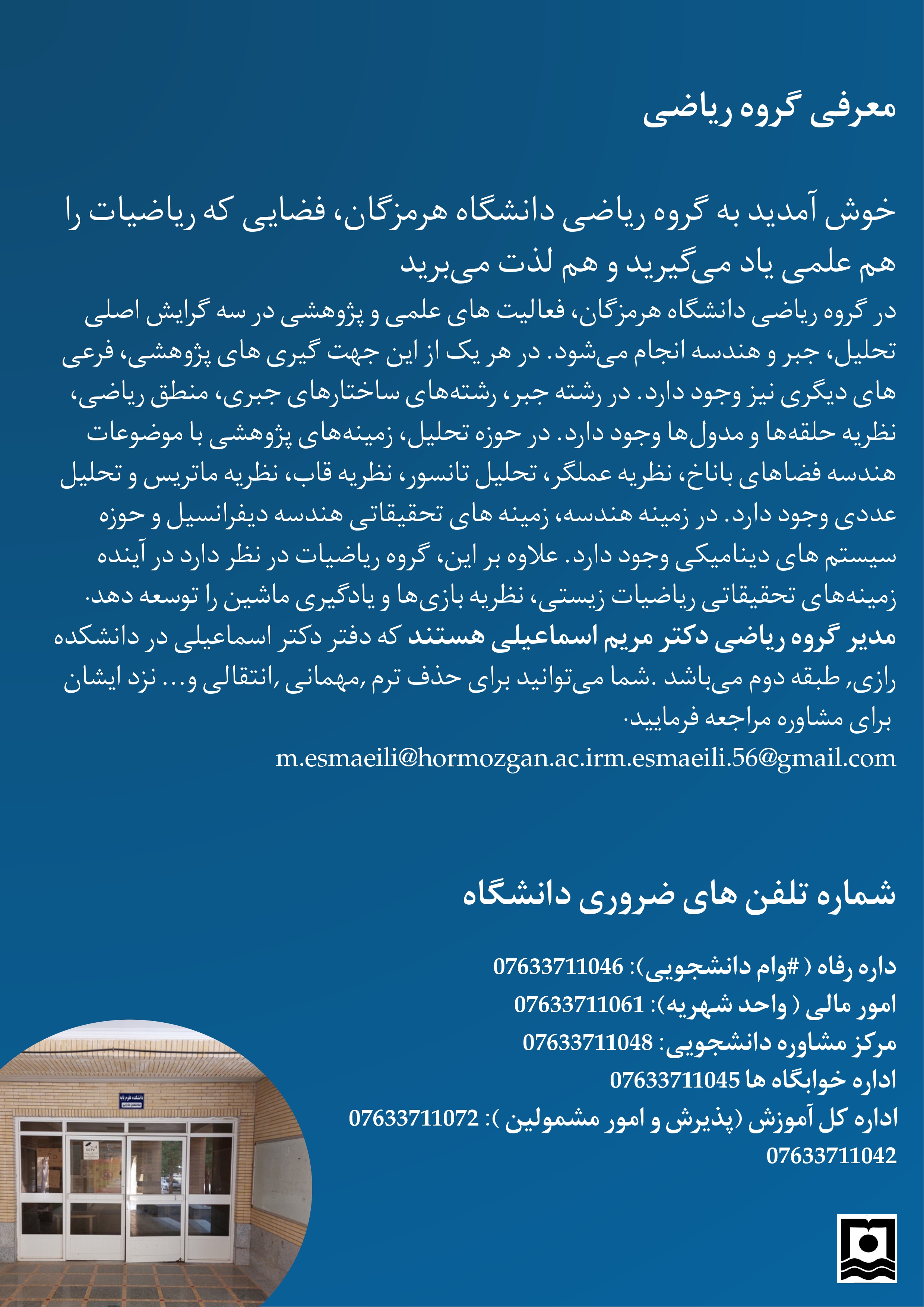 اینفوگرافیک معرفی گروه ریاضی دانشکده علوم پایه دانشگاه هرمزگان