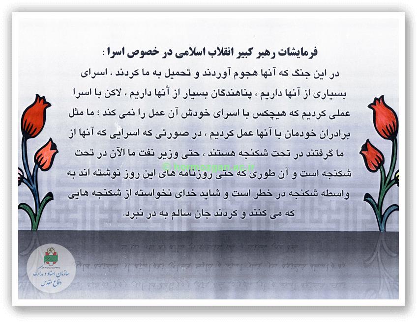 مقام معظم رهبرى درباره آزادگان چنین فرموده‌اند: «یکى از چیزهایى که شما را، دلهایتان را زنده نگه می‌داشت، پر امید نگه می‌‏داشت، یاد آن چهره و روحیه پرصلابت امام عزیزمان بود. آن ‏بزرگوار هم خیلى به یاد اسرا بودند. حال پدرى را که فرزندانش به این شکل از او دور شده باشند، راحت می‌شود فهمید ....