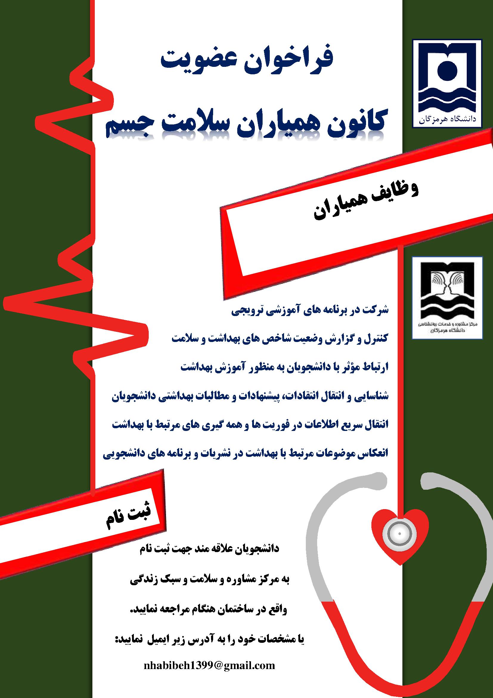 فراخوان عضویت کانون همیاران سلامت جسم
