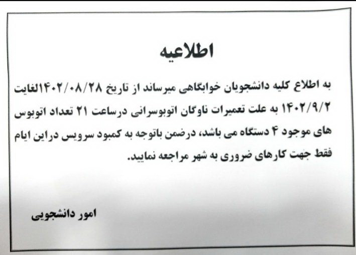 قابل توجه دانشجویان خوابگاهی