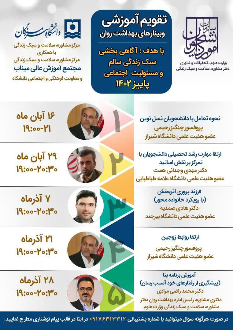 تقویم آموزشی وبینارهای بهداشت روان ویژه اساتید و کارکنان دانشگاه
