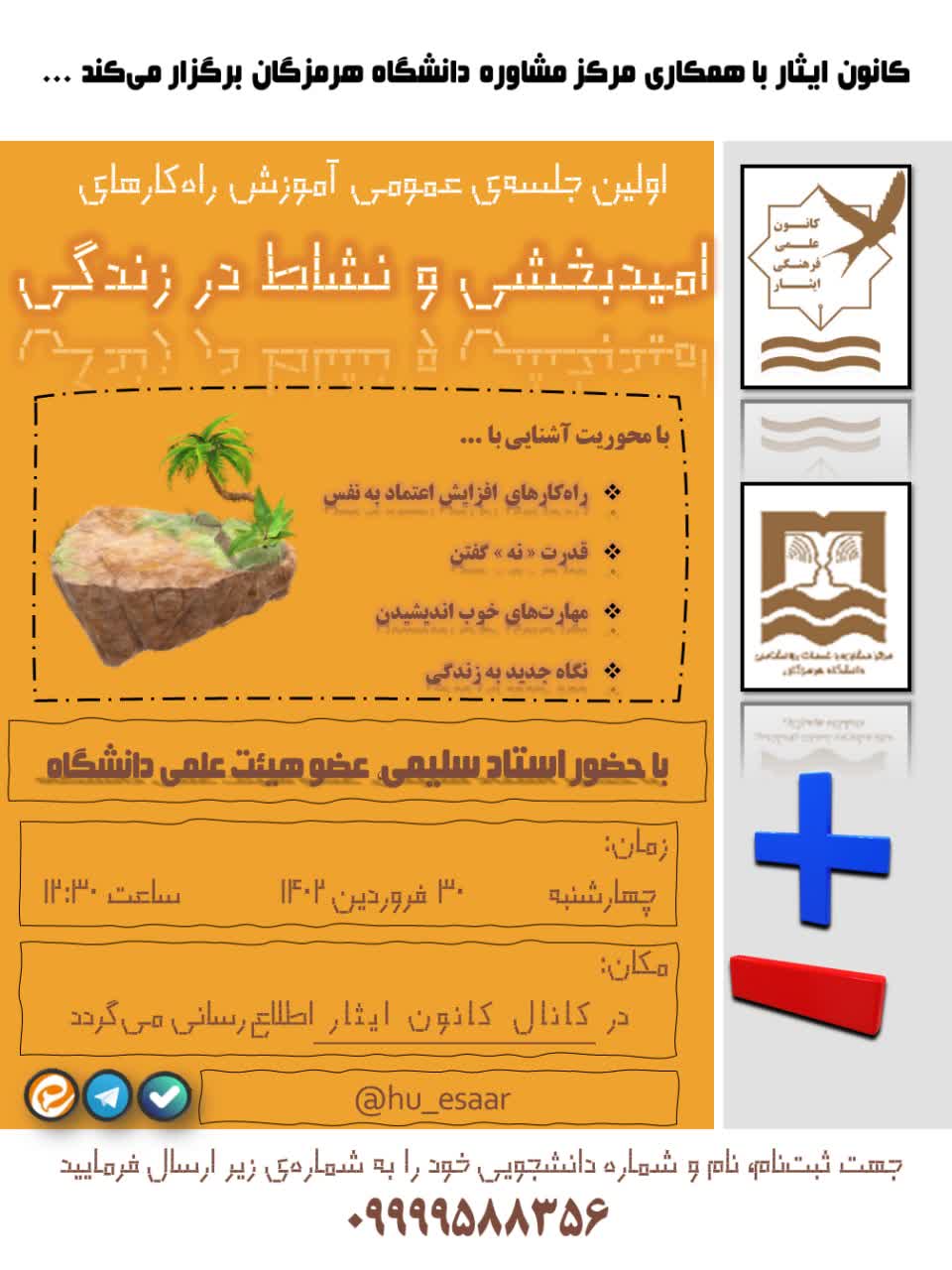کانون ایثار با همکاری مرکز مشاوره دانشگاه هرمزگان برگزار می کند