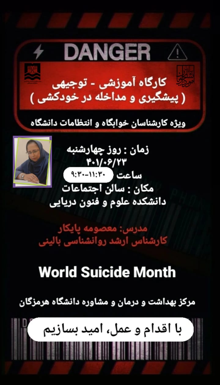 کارگاه آموزشی - توجیهی(پیشگیری و مداخله در خودکشی)