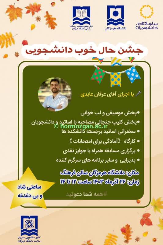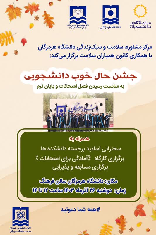 مرکز مشاوره،سلامت و سبک زندگی دانشگاه هرمزگان با همکاری کانون همیاران سلامت برگزار می کند.