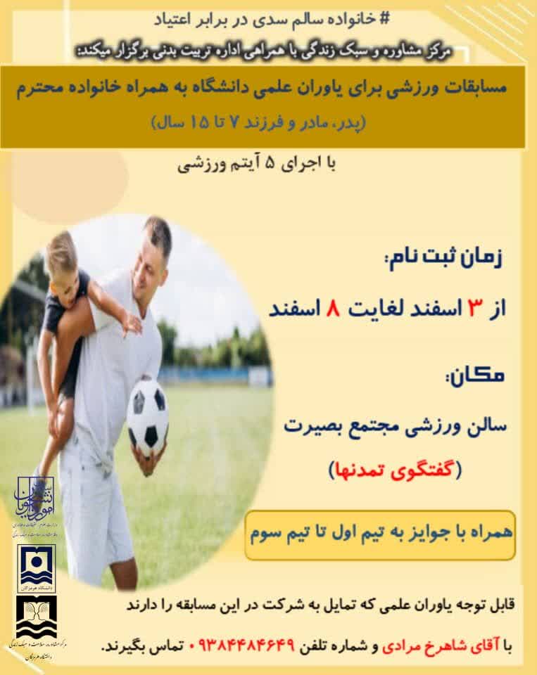 مرکز مشاوره و سبک زندگی با همراهی اداره تربیت بدنی برگزار میکند.
