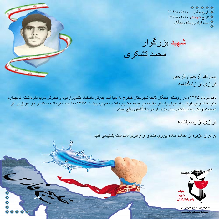 فرازی از زندگینامه و وصیتنامه شهید بزرگوار محمد تشکری