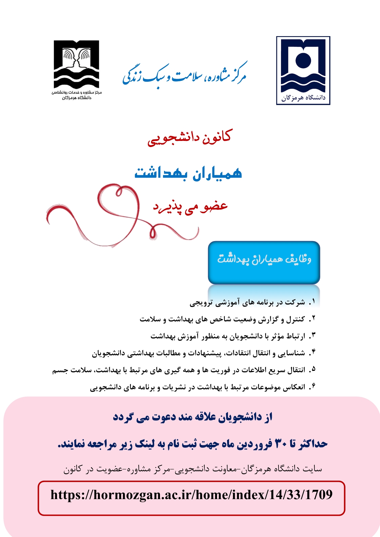 کانون دانشجویی همیاران بهداشت عضو می پذیرد
