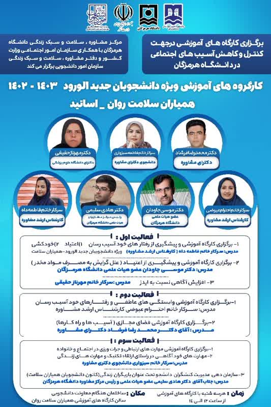 برگزاری کارگاه های آموزشی در جهت کنترل و کاهش آسیب های اجتماعی در دانشگاه هرمزگان