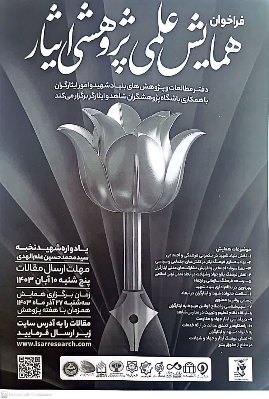 دفتر مطالعات و پژوهش های بنیاد شهید و امور ایثارگران با همکاری باشگاه پژوهشگران شاهد و ایثارگر برگزار می کند