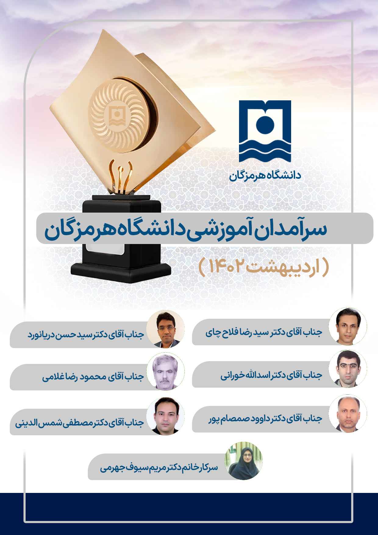 سرآمدان آموزشی دانشگاه هرمزگان در اردیبهشت 1402 معرفی شدند.