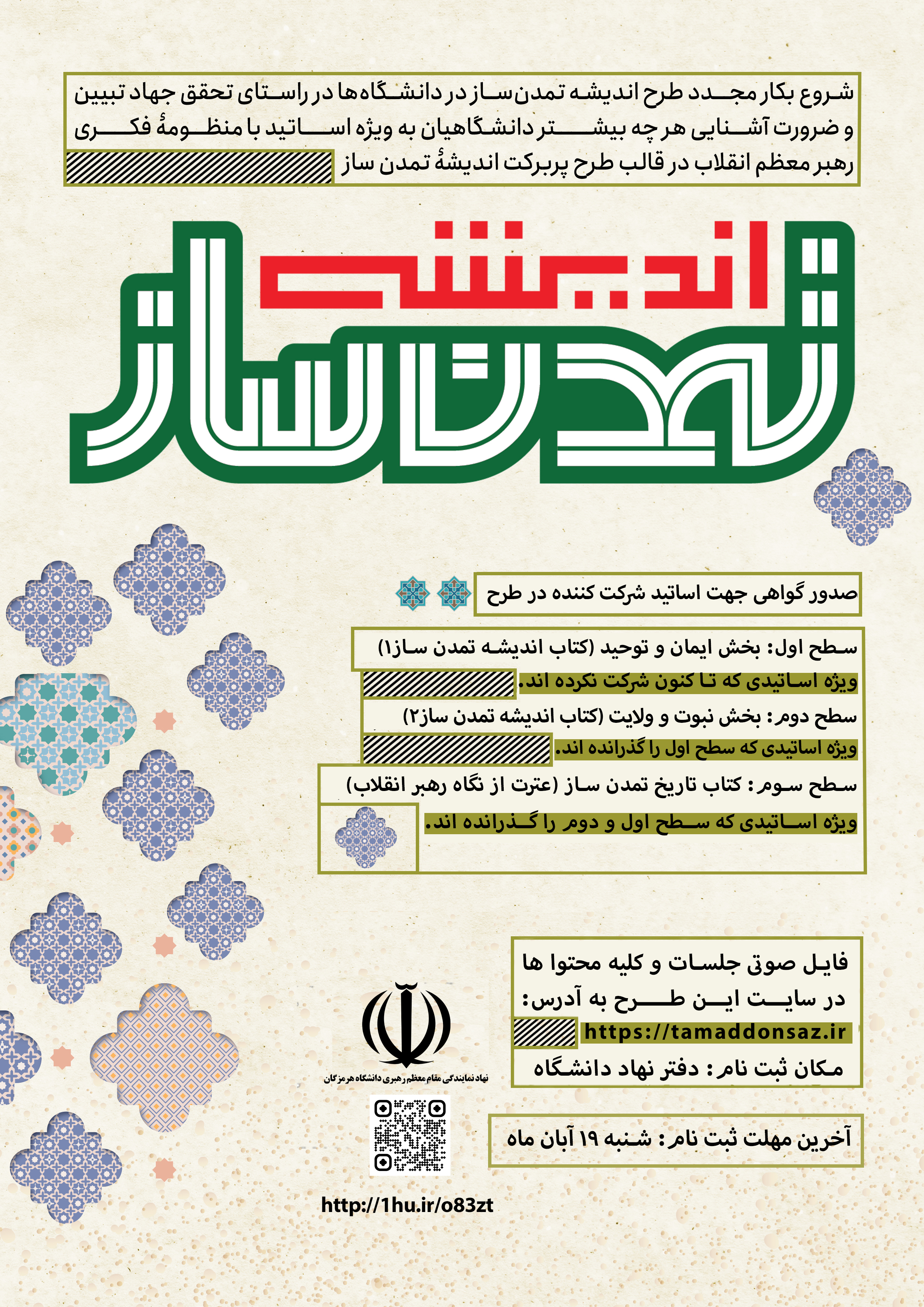 ثبت نام طرح اندیشه تمدن ساز ویژه اعضای هیات علمی دانشگاه هرمزگان آغاز و تا تاریخ شنبه 19 آبان ماه ادامه دارد.