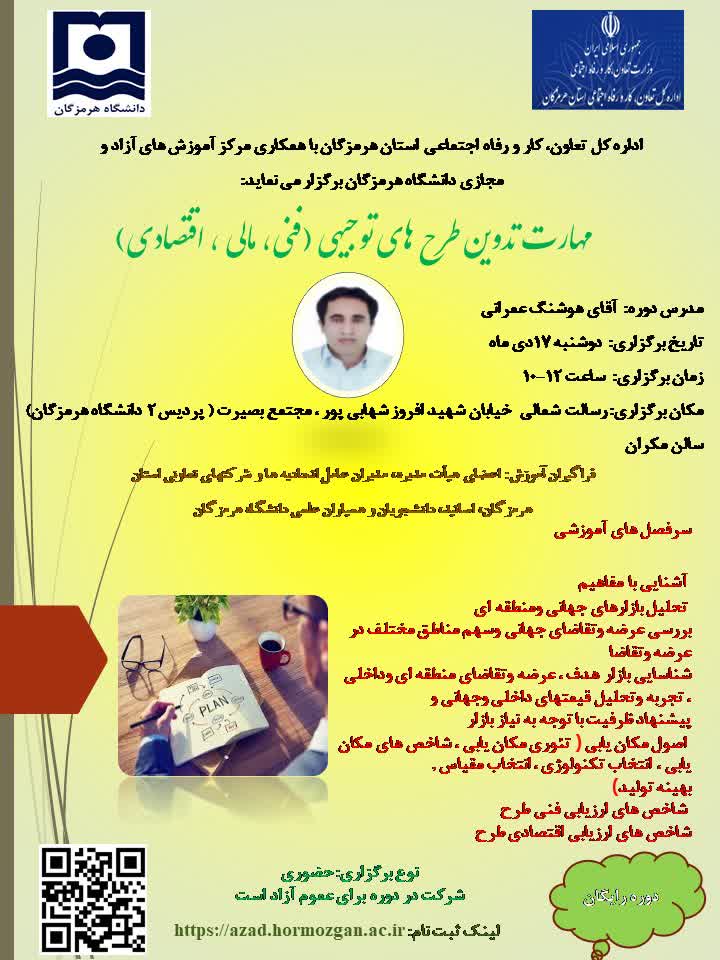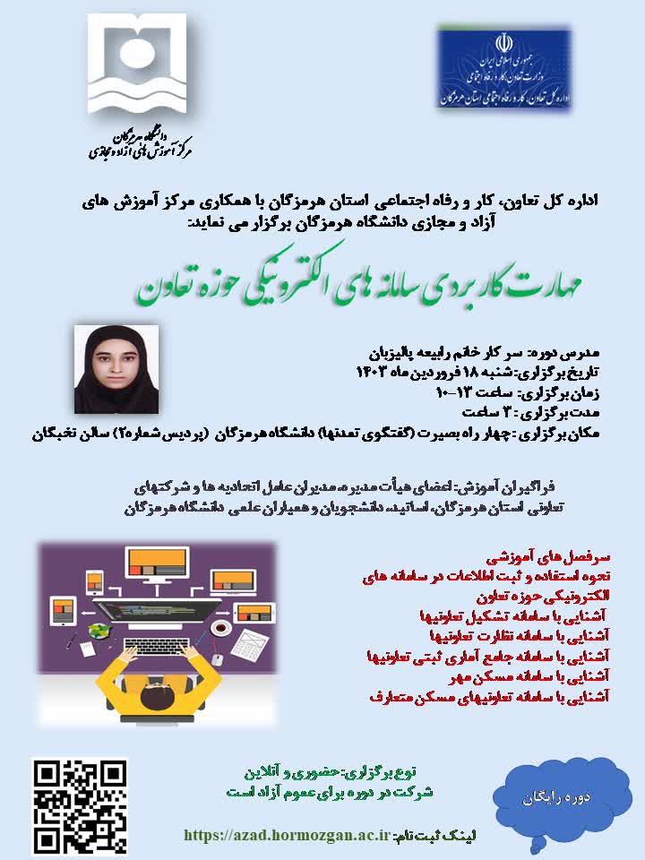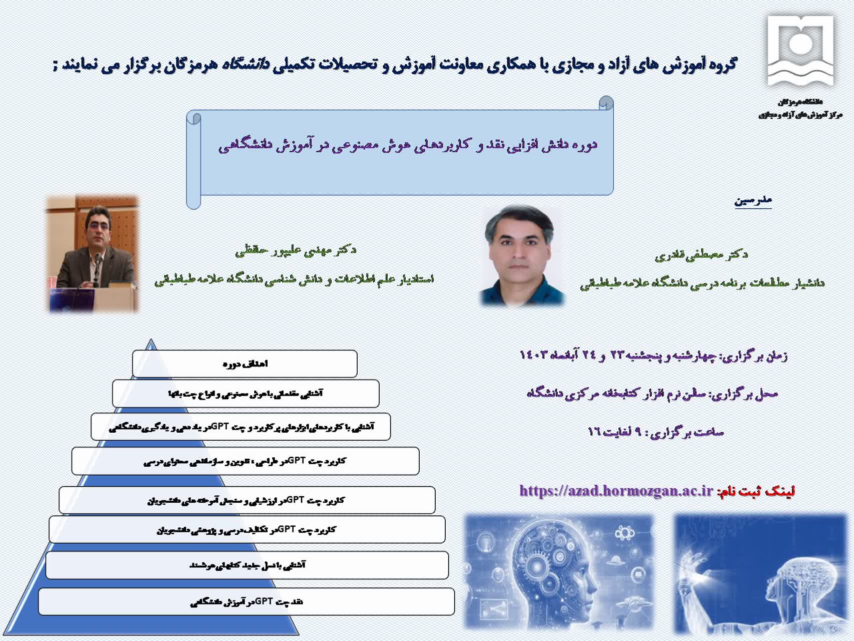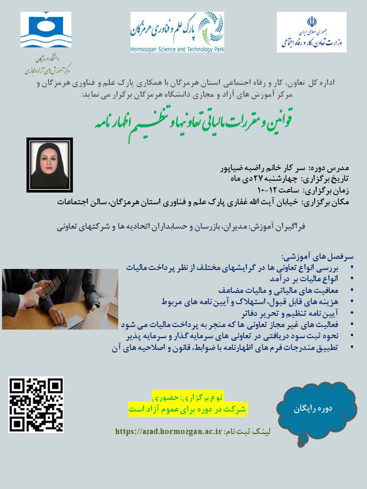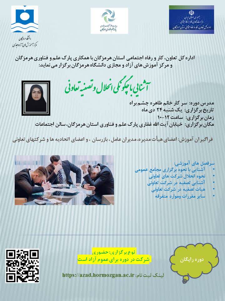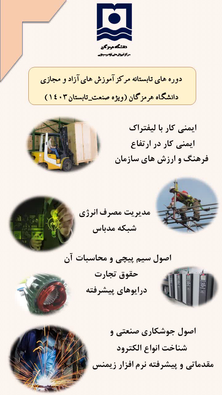 مرکز آموزش های آزاد و مجازی دانشگاه هرمزگان برگزار می کند: