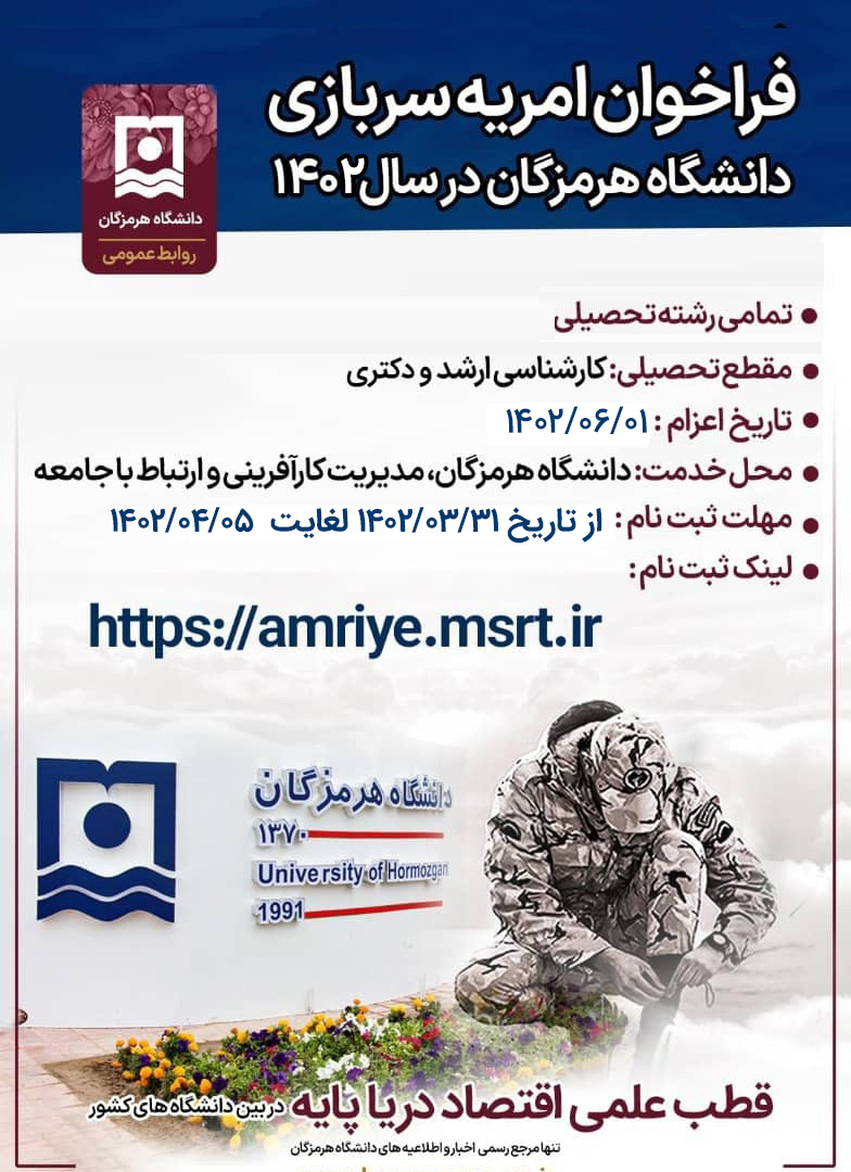 فراخوان امریه سربازی دانشگاه هرمزگان در سال 1402