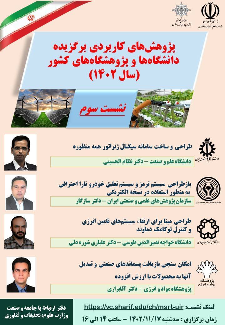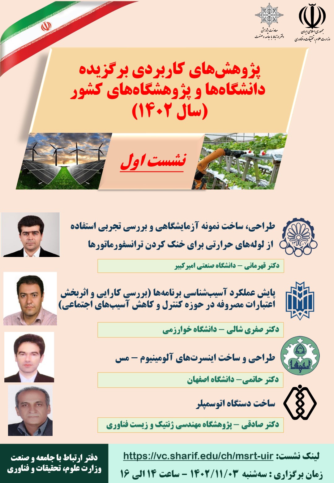 اولین نشست مجازی : پژوهش های کاربردی برگزیده دانشگاه ها و پژوهشگاه های کشور 1402