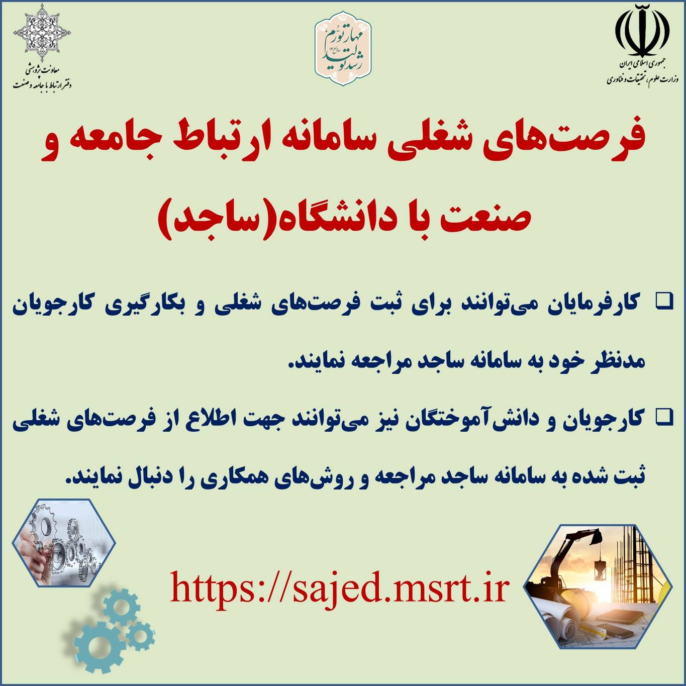بخش فرصت‌های شغلی در سامانه ارتباط جامعه و صنعت با دانشگاه‌ها (سامانه ساجد)