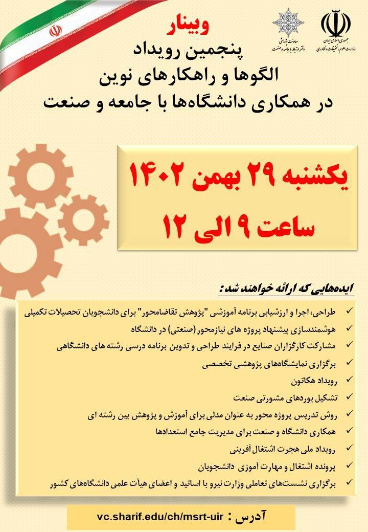 وبینار پنجمین رویداد الگو‌ها و راهکارهای نوین در همکاری دانشگاه‌ها با جامعه و صنعت
