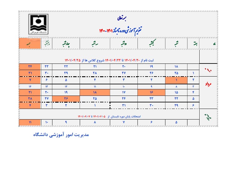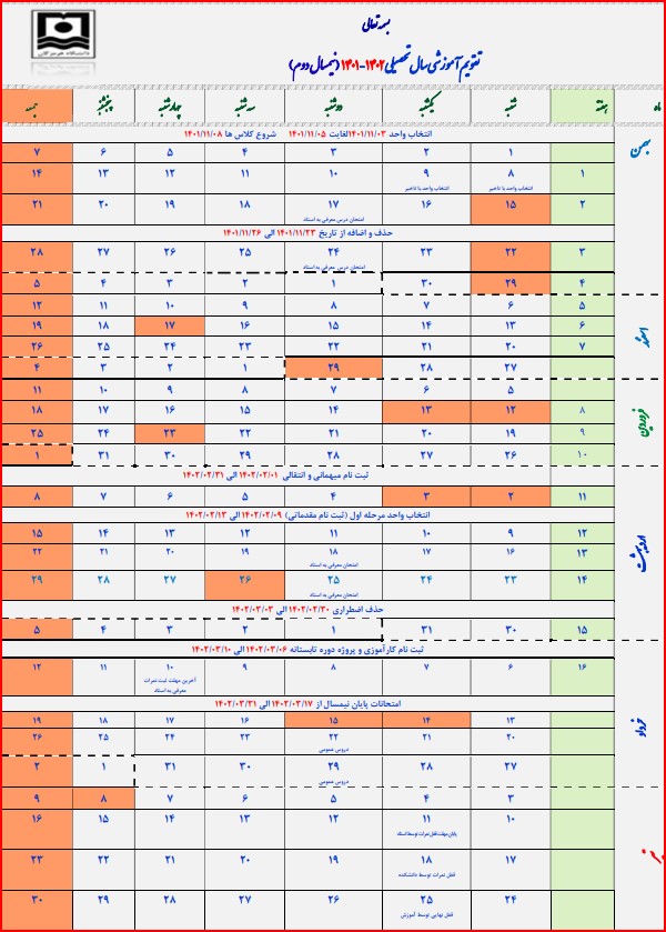 تقویم درخواست دفاع از پایان نامه و رساله دکتری در نیمسال اول 1401