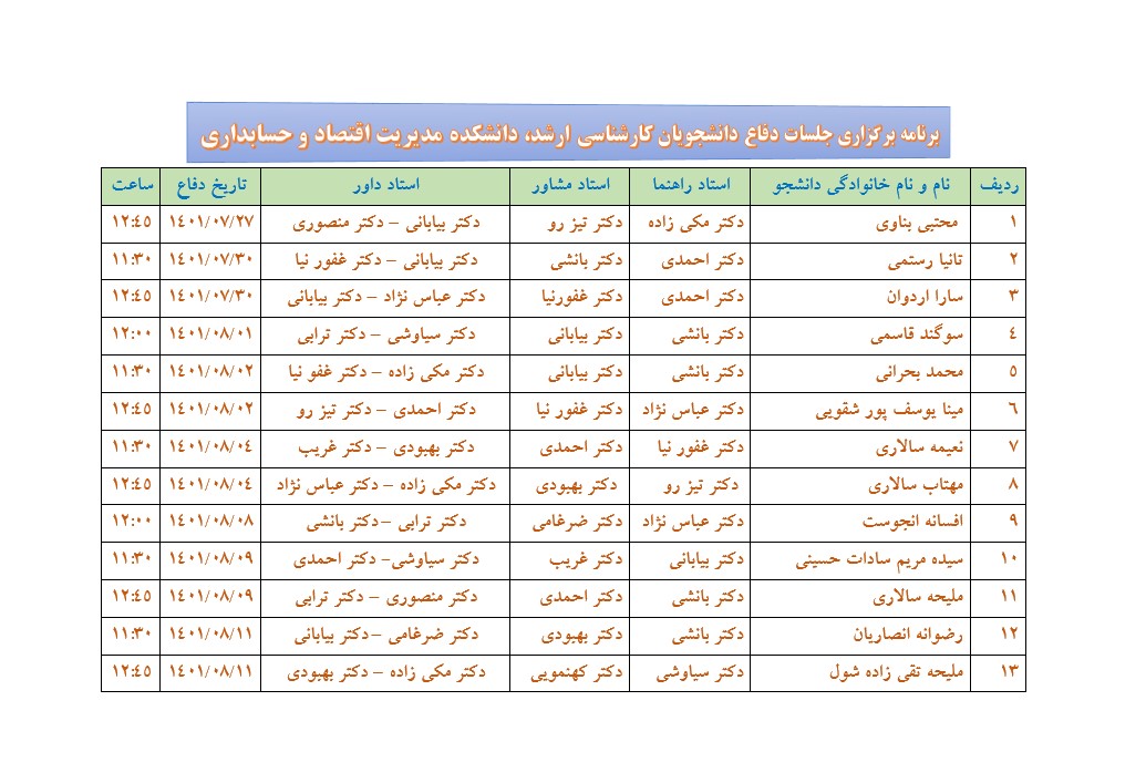 برنامه دفاع دانشجویان کارشناسی ارشد نیمسال 4011