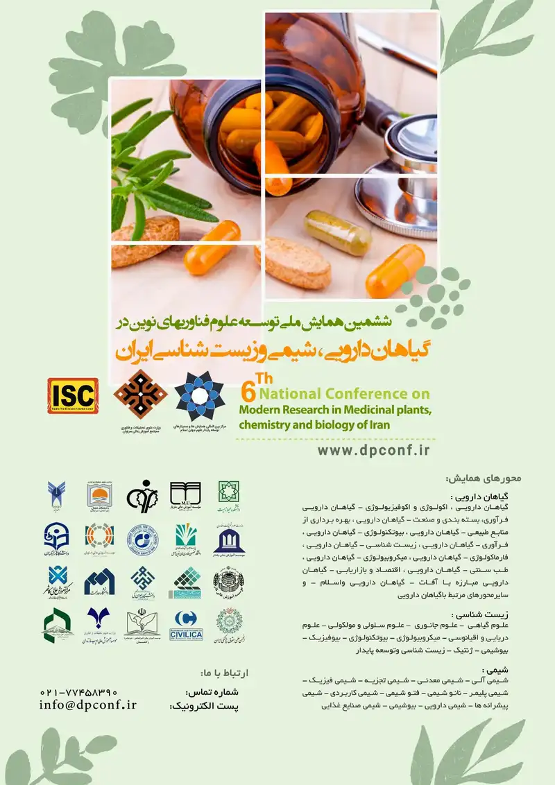 ششمین همایش ملی توسعه علوم فناوریهای نوین در گیاهان دارویی، شیمی و زیست شناسی ایران، 15 شهریور ماه 1402
