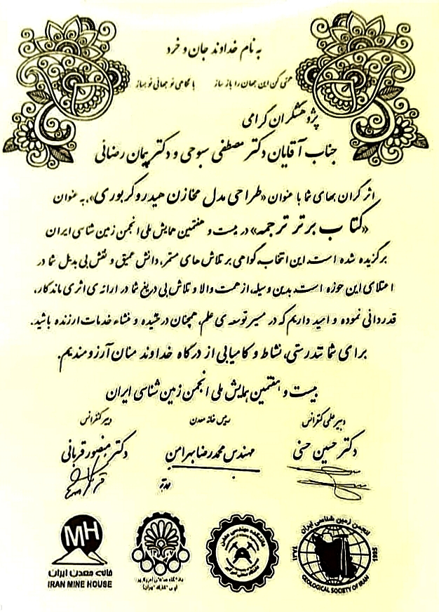 انتخاب کتاب طراحی مدل مخازن هیدروکربوری جناب آقای دکتر رضائی به عنوان کتاب برتر ترجمه در بیست و هفتمین همایش ملی انجمن زمین شناسی ایران