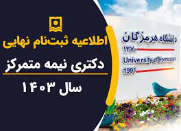 طلاعیه ثبت نام از پذیرفتهشدگان نهایی آزمون ورودی دوره دكتری نیمهمتمركز سال 1403