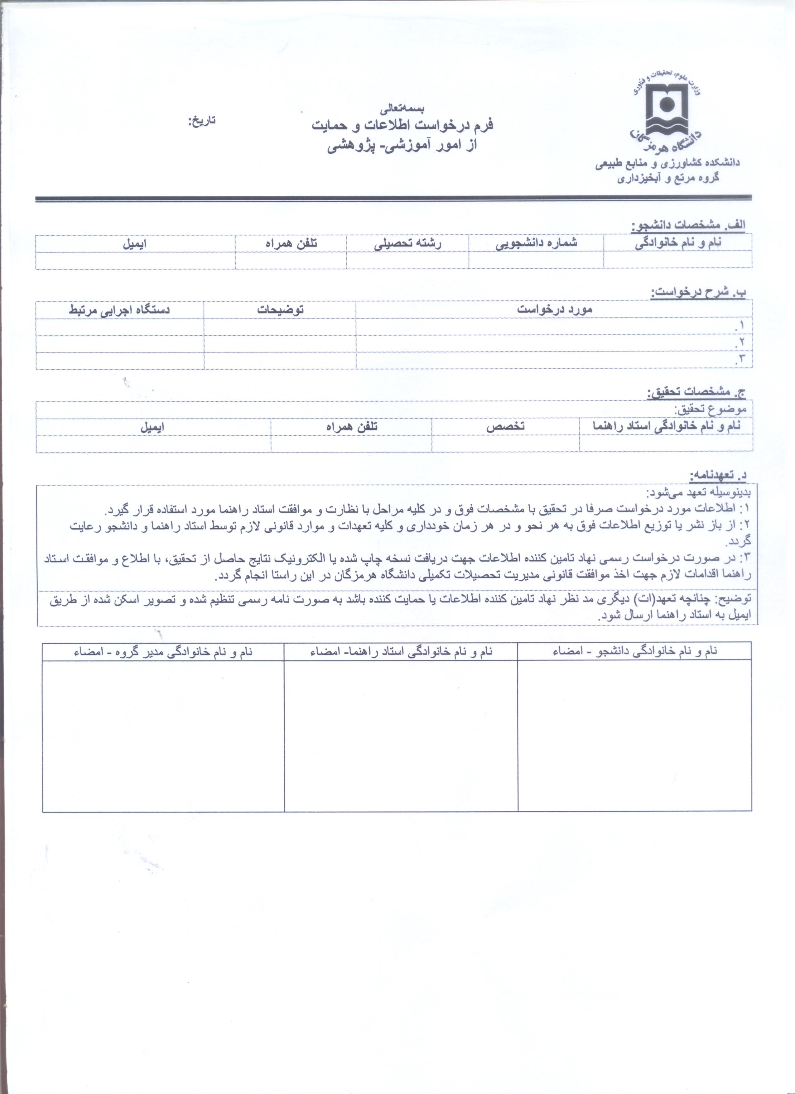 فرم درخواست داده از ادارات خارج ازدانشگاه(1573)