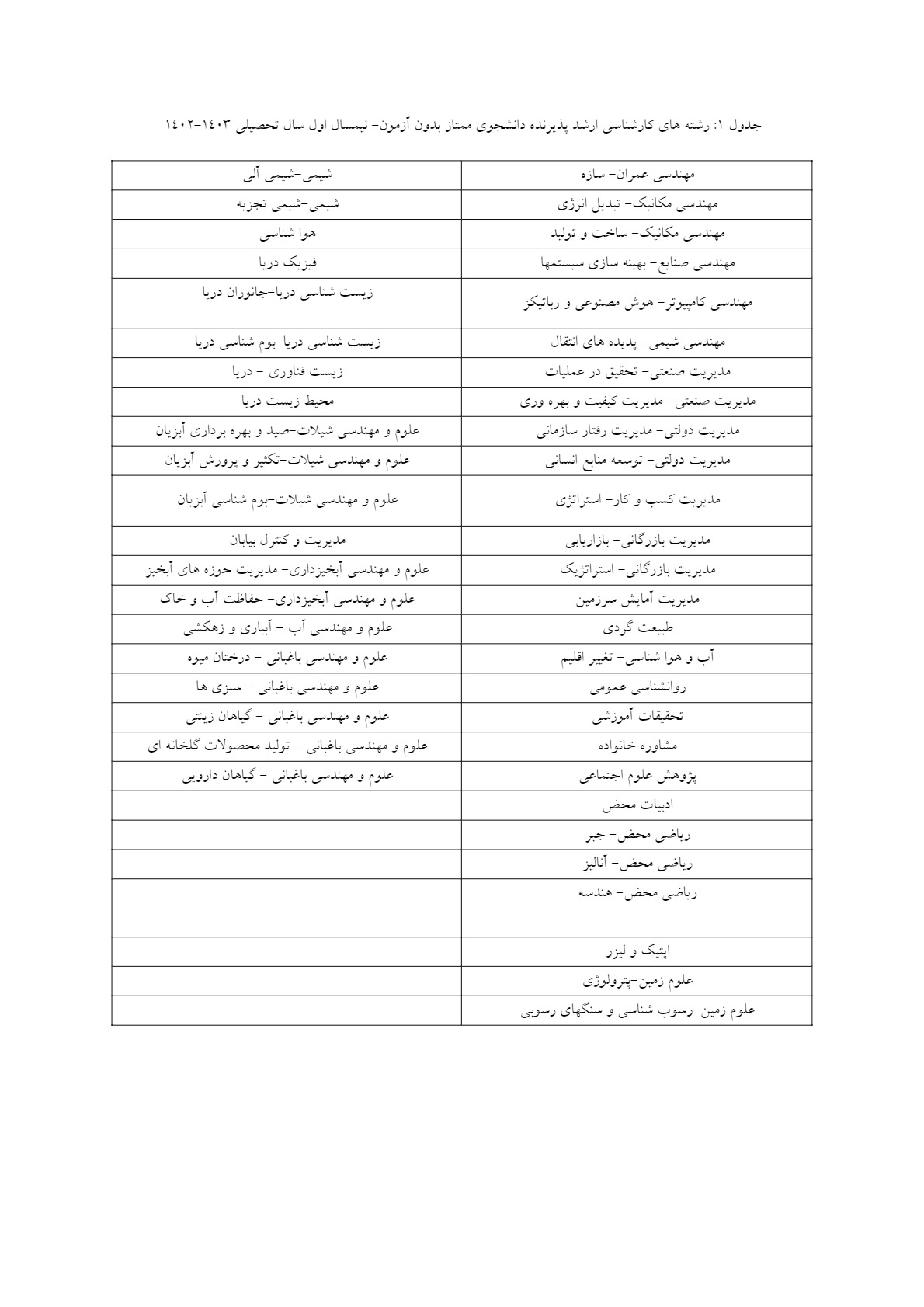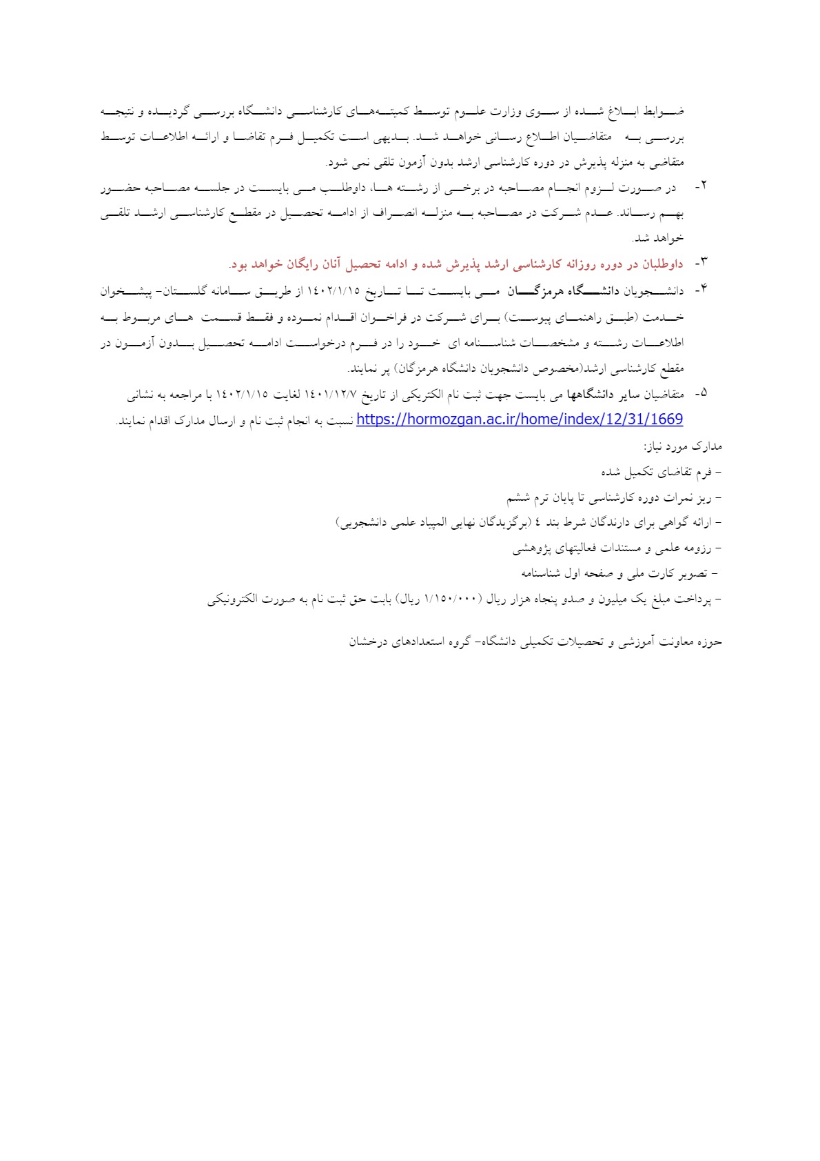 فراخوان پذیرش دانشجو به شیوه بدون آزمون در مقطع کارشناسی ارشد برای سال تحصیلی403-1402