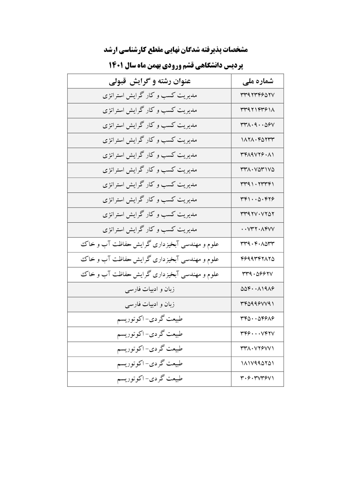 اطلاعیه ثبت نام از پذیرفته شدگان مقطع کارشناسی ارشد پردیس دانشگاهی قشم